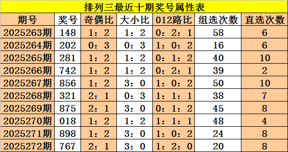 上期细致:体彩胪列三第2025272期奖号:767,奇偶比2:1,大小比3:0,012比1:2:0。